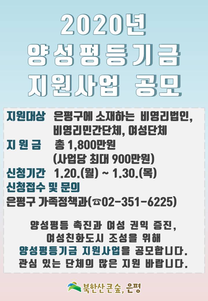 2020년 은평구 양성평등기금 지원사업 공모