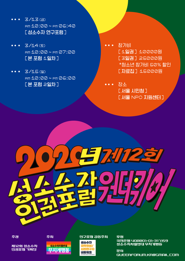 제12회 성소수자 인권포럼 2020 원더퀴어 개최 예정을 알려드립니다!