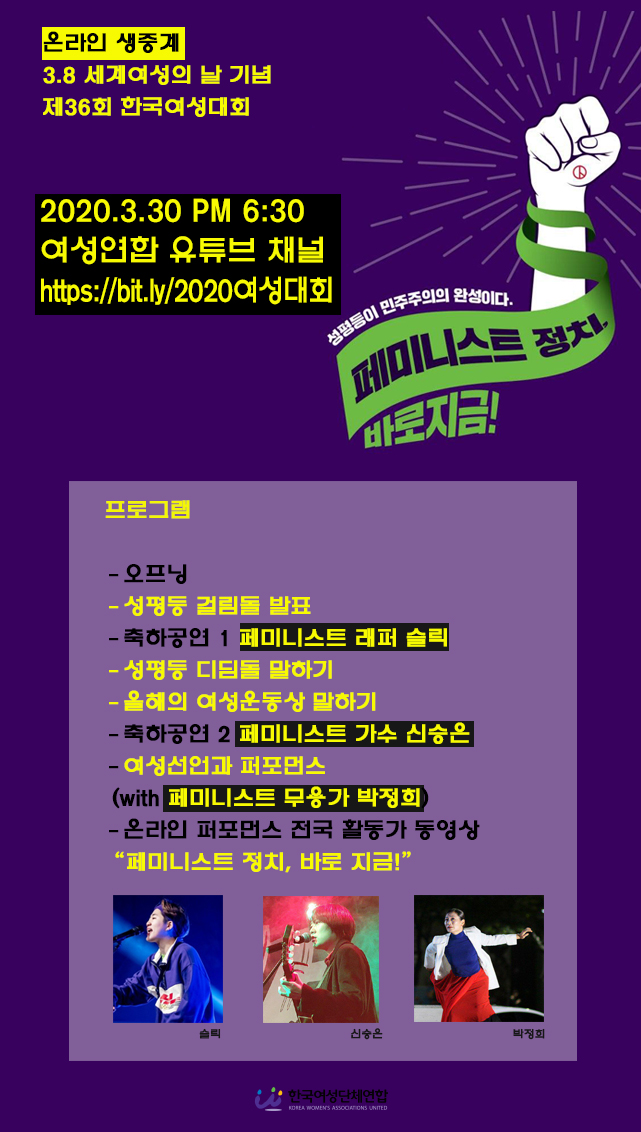 여성연합 유튜브 채널 https://bit.ly/2020여성대회
