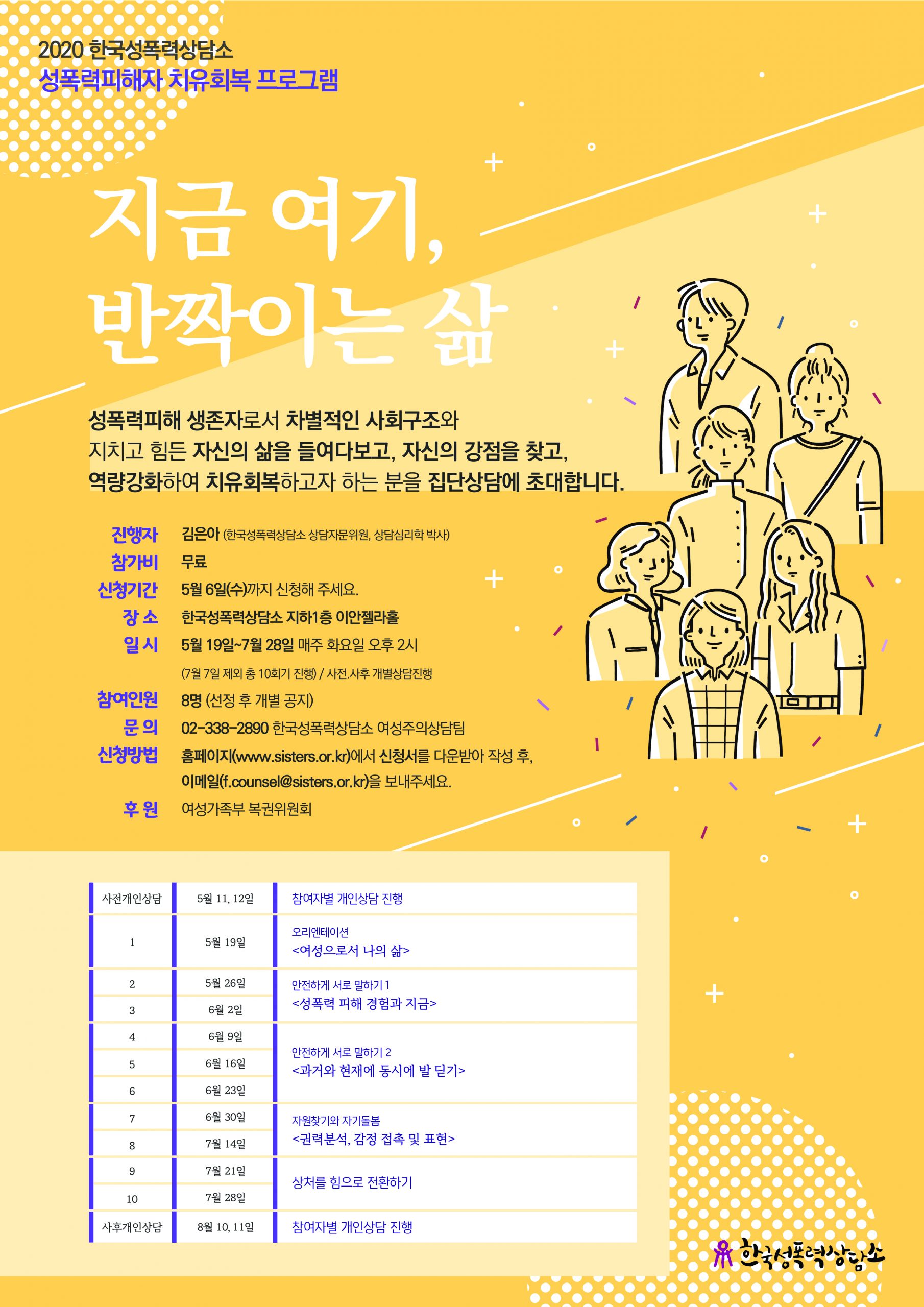 성폭력피해자 치유회복프로그램 집단상담 <지금 여기, 반짝이는 삶>을 진행합니다.