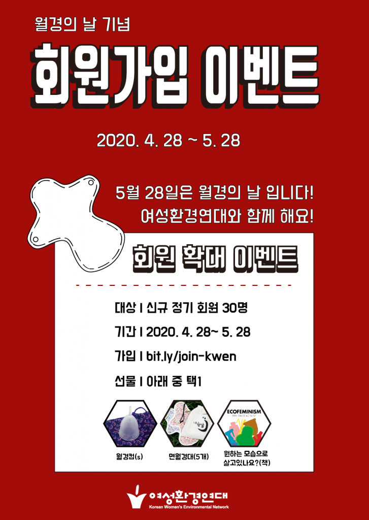 월경의 날을 맞이하여 특별히 준비한 여성환경연대의 회원확대 이벤트!