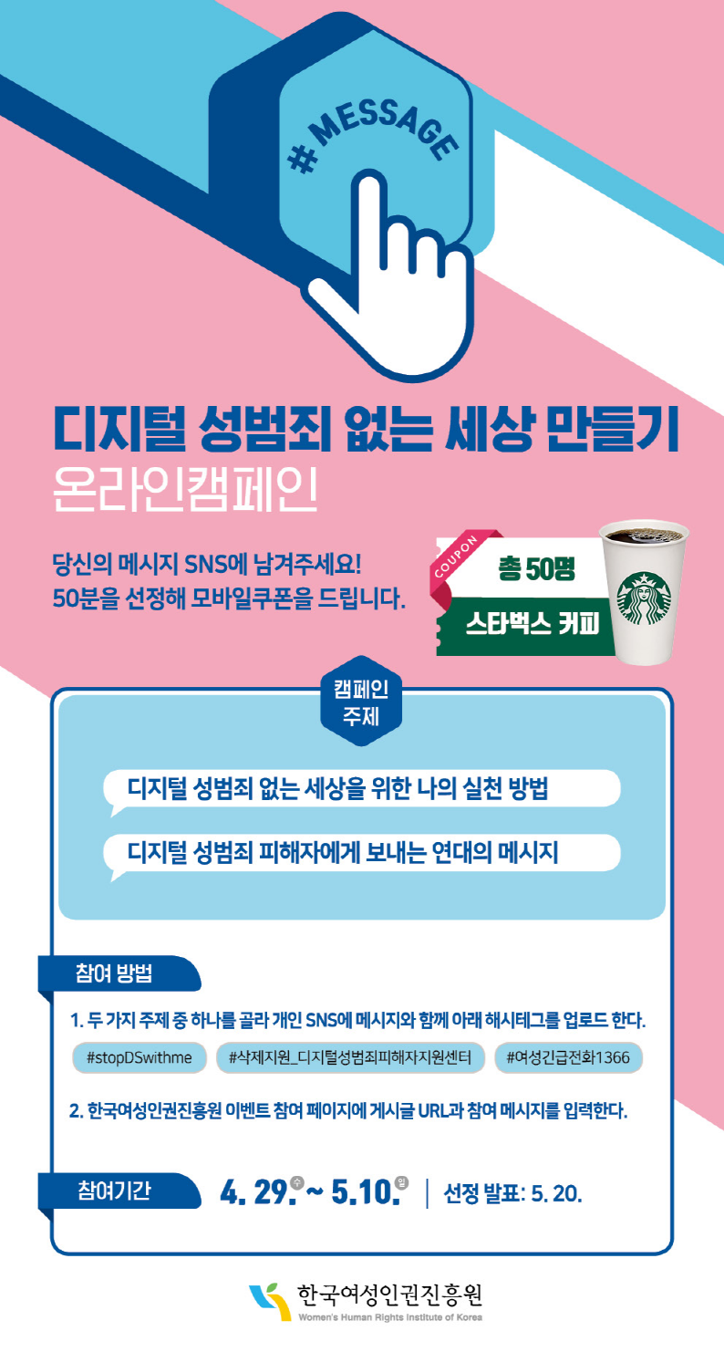 디지털 성범죄 없는 세상 만들기 온라인 캠페인을 진행합니다.