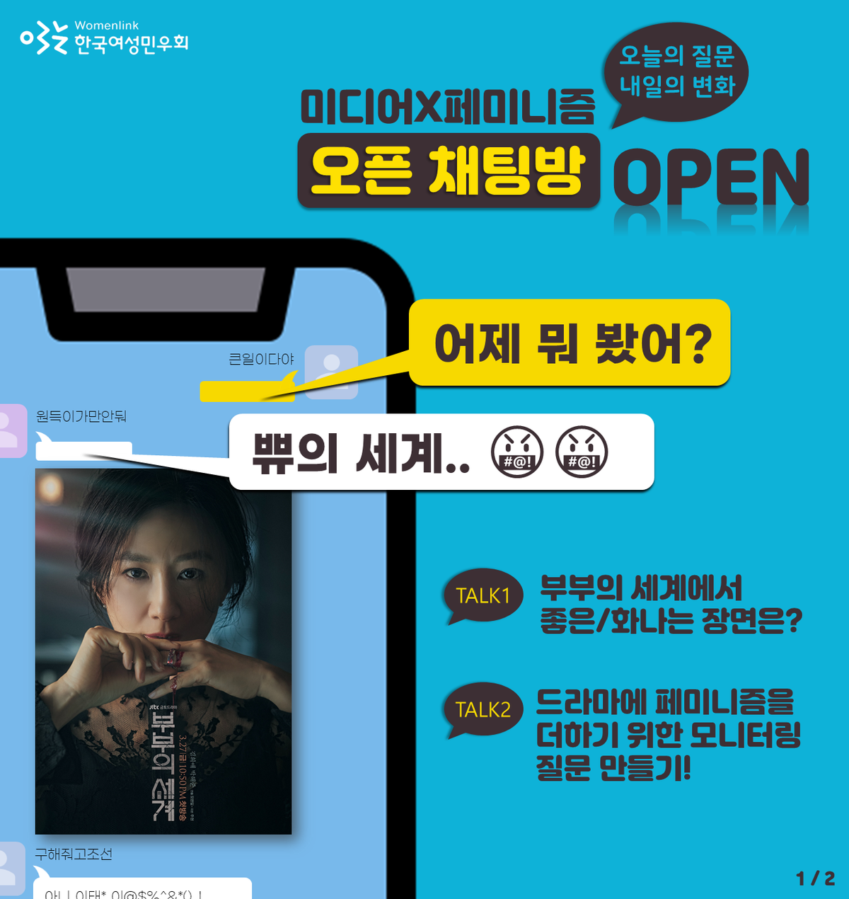 오픈채팅방에서 부부의 세계와 K-드라마를 씹고 뜯어봅시다.