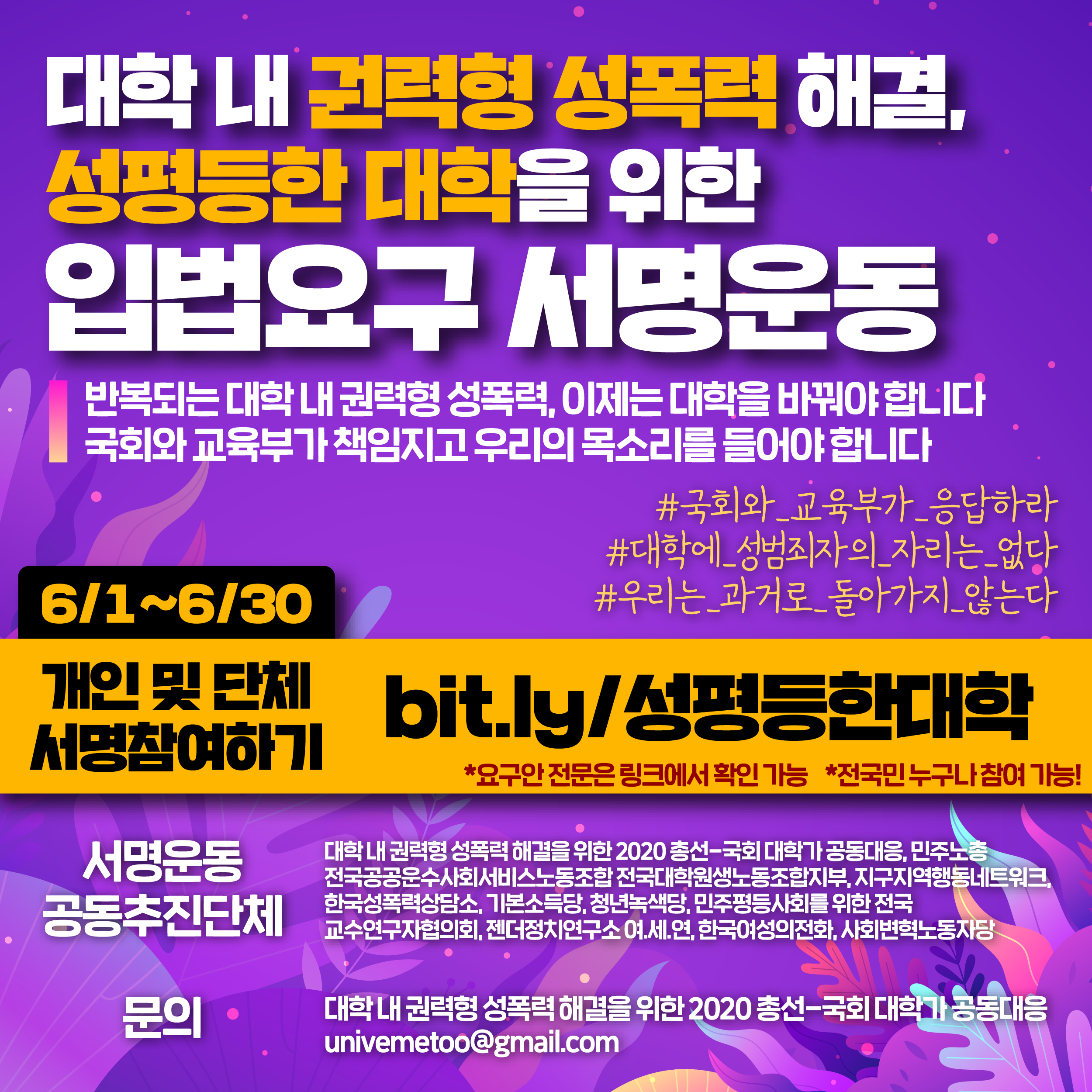 [한국여성의전화] 대학 내 권력형 성폭력 해결, 성평등한 대학을 위한 입법요구 서명운동