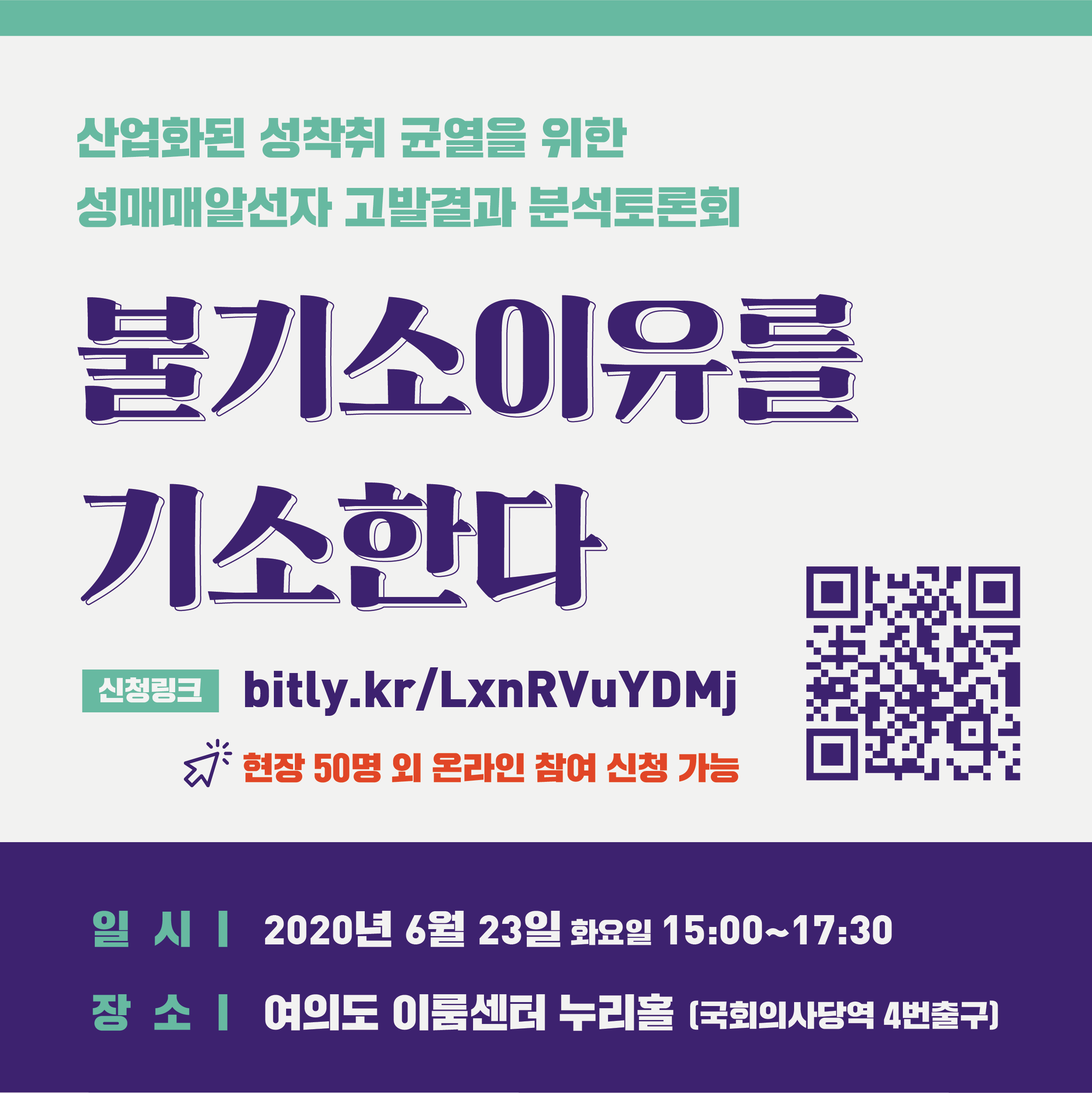 ※ 현장 50명 외 온라인 참여 신청은 6월 19일(금)까지 가능하며 토론회 종료 후 홈페이지에 자료집이 게시됩니다.
