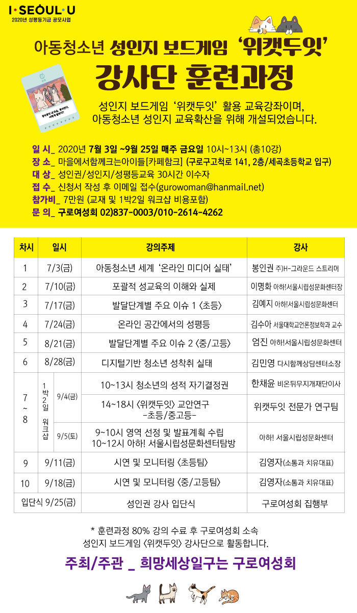 [구로여성회] 아동청소년 성인지 보드게임 ‘위캣두잇’ 강사단 훈련과정