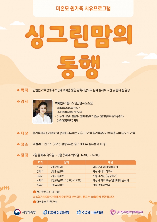[한국미혼모지원네트워크] 미혼모 원가족 치유프로그램 <싱그린맘의 동행> 신청