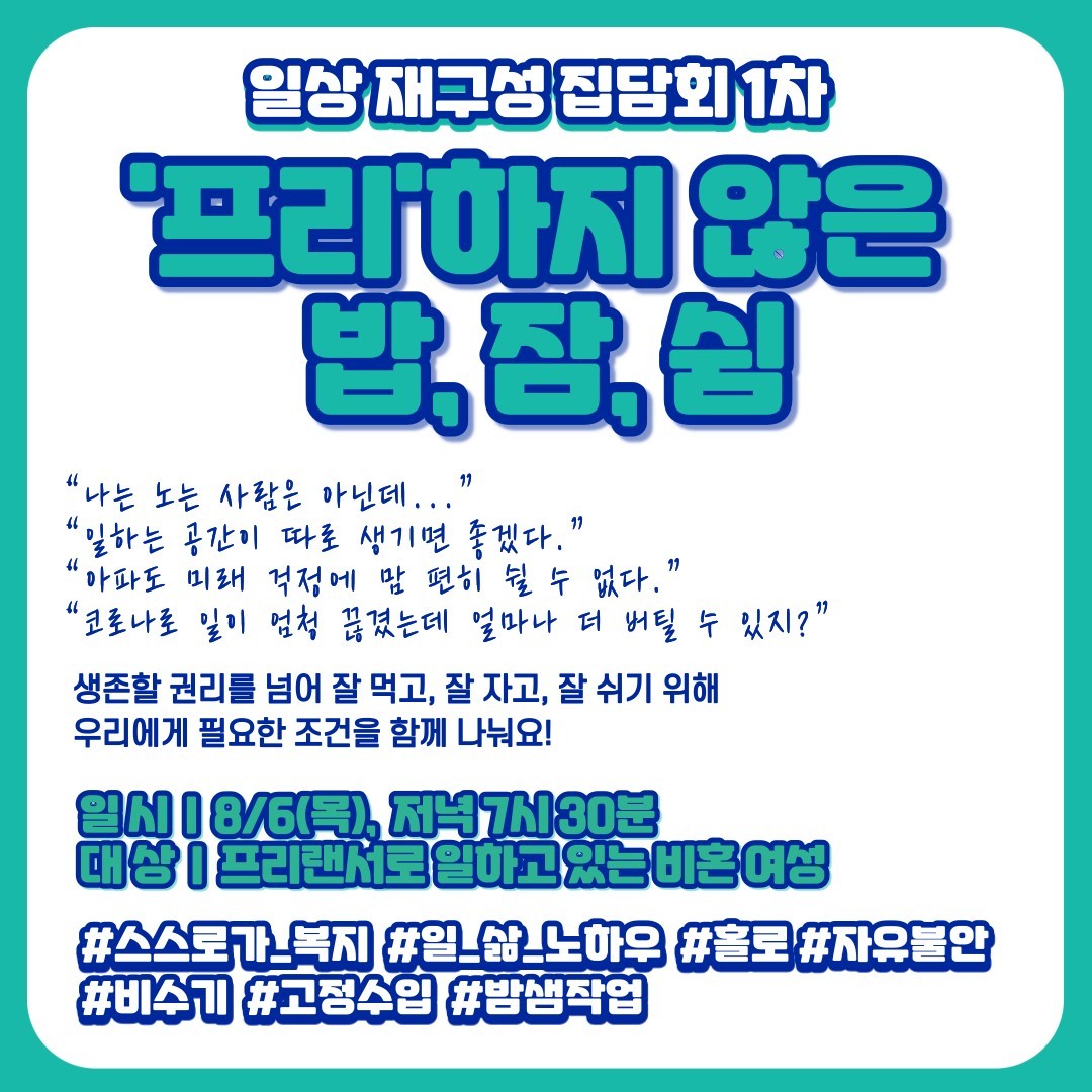 [한국여성민우회] 일상 재구성 집담회 <밥, 잠, 쉼> 1, 2, 3, 4차 함께 해요! (8/6, 11, 13, 18)