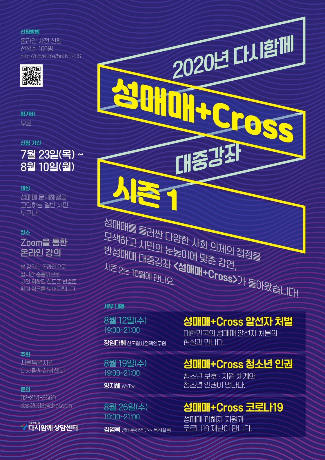[다시함께상담센터] 2020년 다시함께 대중강좌 <성매매+CROSS 시즌 1> 선착순 참여자 모집 (~8/10)