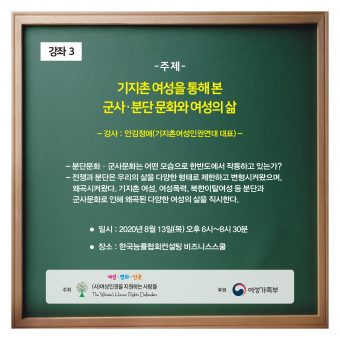북경행동강령 채택 25주년 유엔안보리 결의안 1325호 채택 20주년 기념 시민사회협력사업의 일환으로 여인지사에서는 평화아카데미 ‘여성과 평화 이야기’를 진행하고 있습니다. 참가하고자 하시는 분들은 사전에 신청하여 주시기 바랍니다.