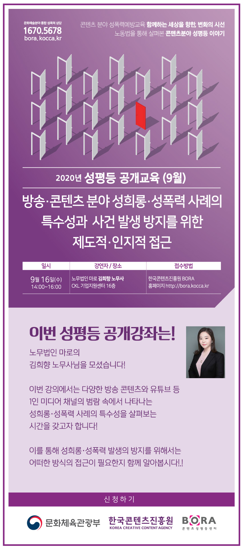 ☆ 본 교육은 법정의무교육(성희롱 예방 교육 이수)과 무관하오니, 이 점 착오없으시길 바랍니다!