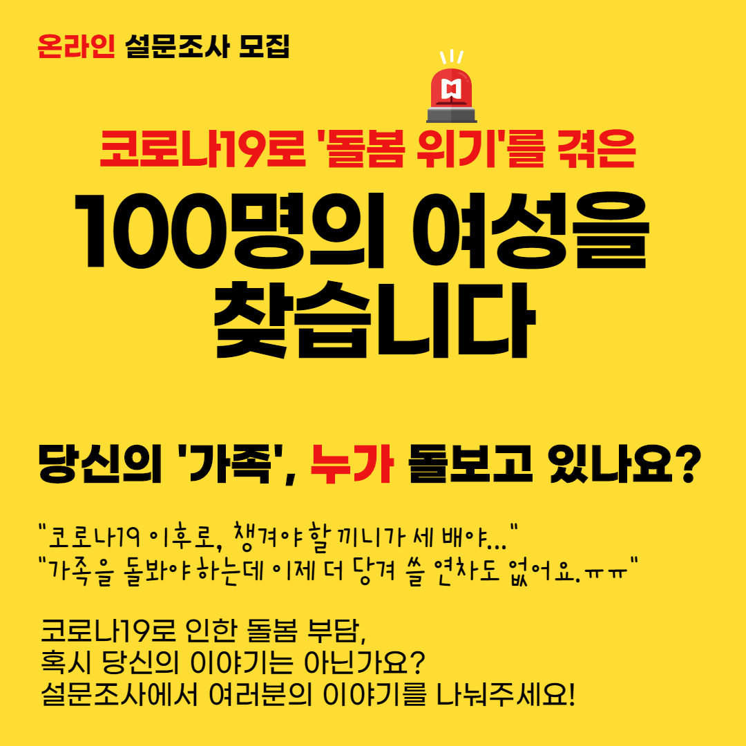 코로나19로 ‘돌봄 위기’를 겪은 100명의 여성을 찾습니다!