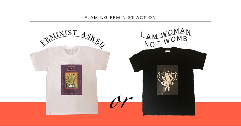 새롭게 변화하는 불꽃페미액션을 알리고 재정을 확충하기 위해, 그리고 불꽃페미액션에 함께하는 액션단원들과 후원회원 분들께 감사의 마음을 전하기 위해 불꽃페미액션 낙태죄 폐지를 위한 포스터 공모전의 작품이 프린팅된 티셔츠를 판매, 증정 합니다.
