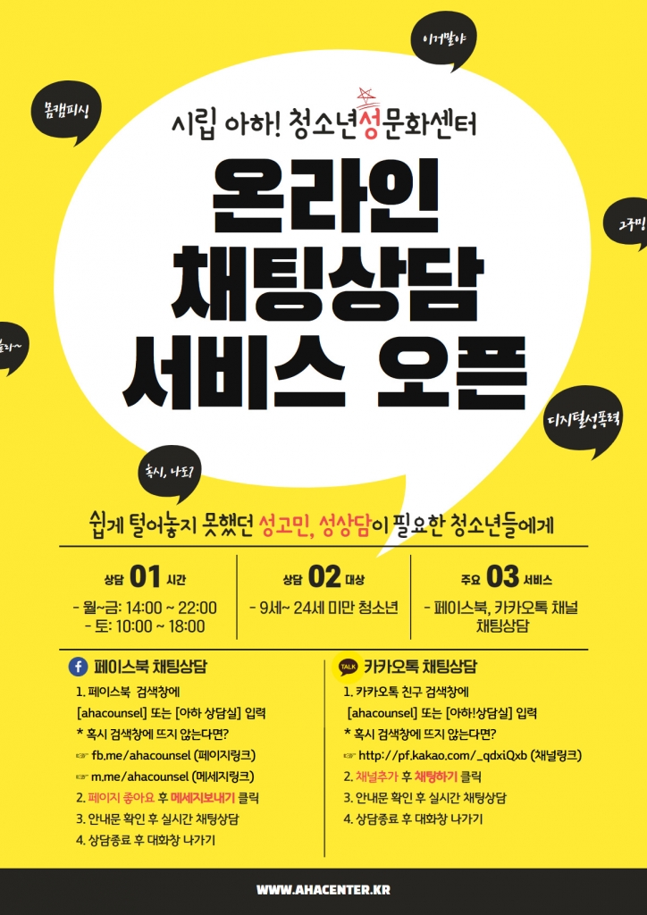 – 페이스북(아하 상담실): http://fb.me/ahacounsel