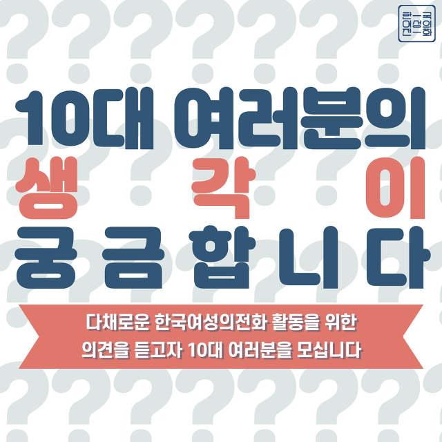 다채로운 한국여성의전화 활동을 위한 의견을 듣고자 10대 여러분을 모십니다.