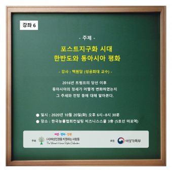 북경행동강령 채택 25주년 유엔안보리 결의안 1325호 채택 20주년 기념 시민사회협력사업의 일환으로 여인지사에서는 평화아카데미 ‘여성과 평화 이야기’를 진행하고 있습니다.