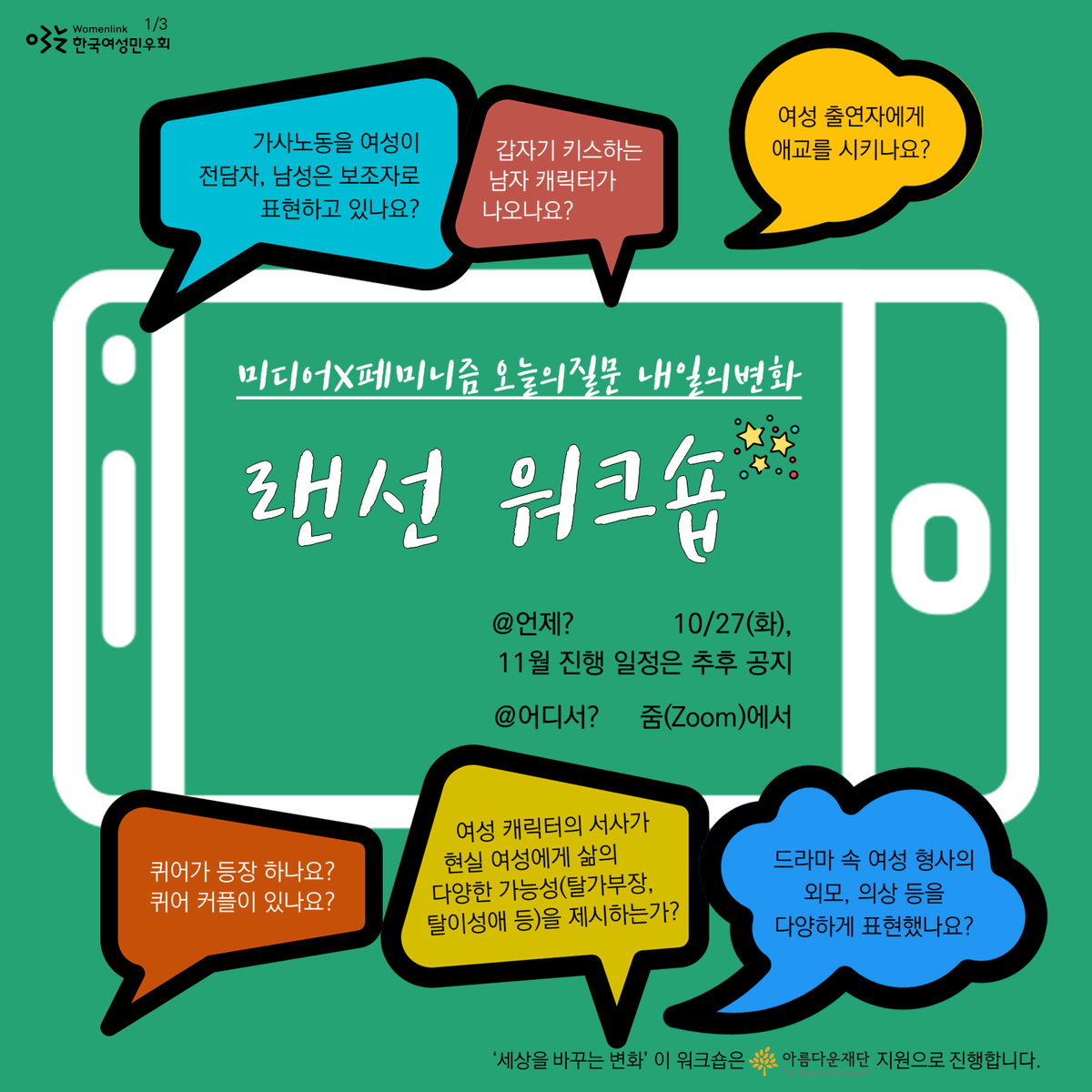 [한국여성민우회] 미디어X페미니즘 오늘의질문, 내일의변화 <랜선 워크숍_보건교사 안은영 편> (10/27)