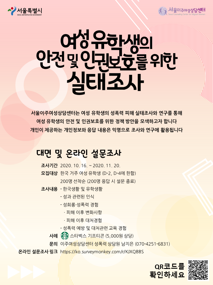 [서울이주여성상담센터] 여성 유학생의 안전 및 인권보호를 위한 온라인 실태조사