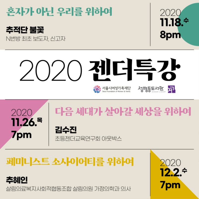 2020년 성평등도서관 온라인 젠더특강을 시작합니다!