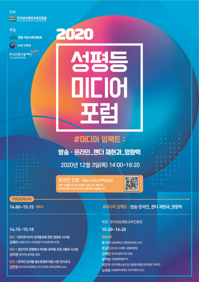 □ 행사명 : 2020년 성평등 미디어 포럼 ‘#미디어 임팩트 : 방송·온라인_젠더 재현과_영향력’