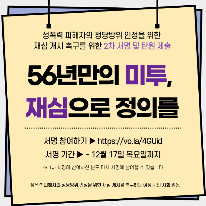 [한국여성의전화] <56년만의 미투, 재심이 개시될 수 있도록!> 서명운동
