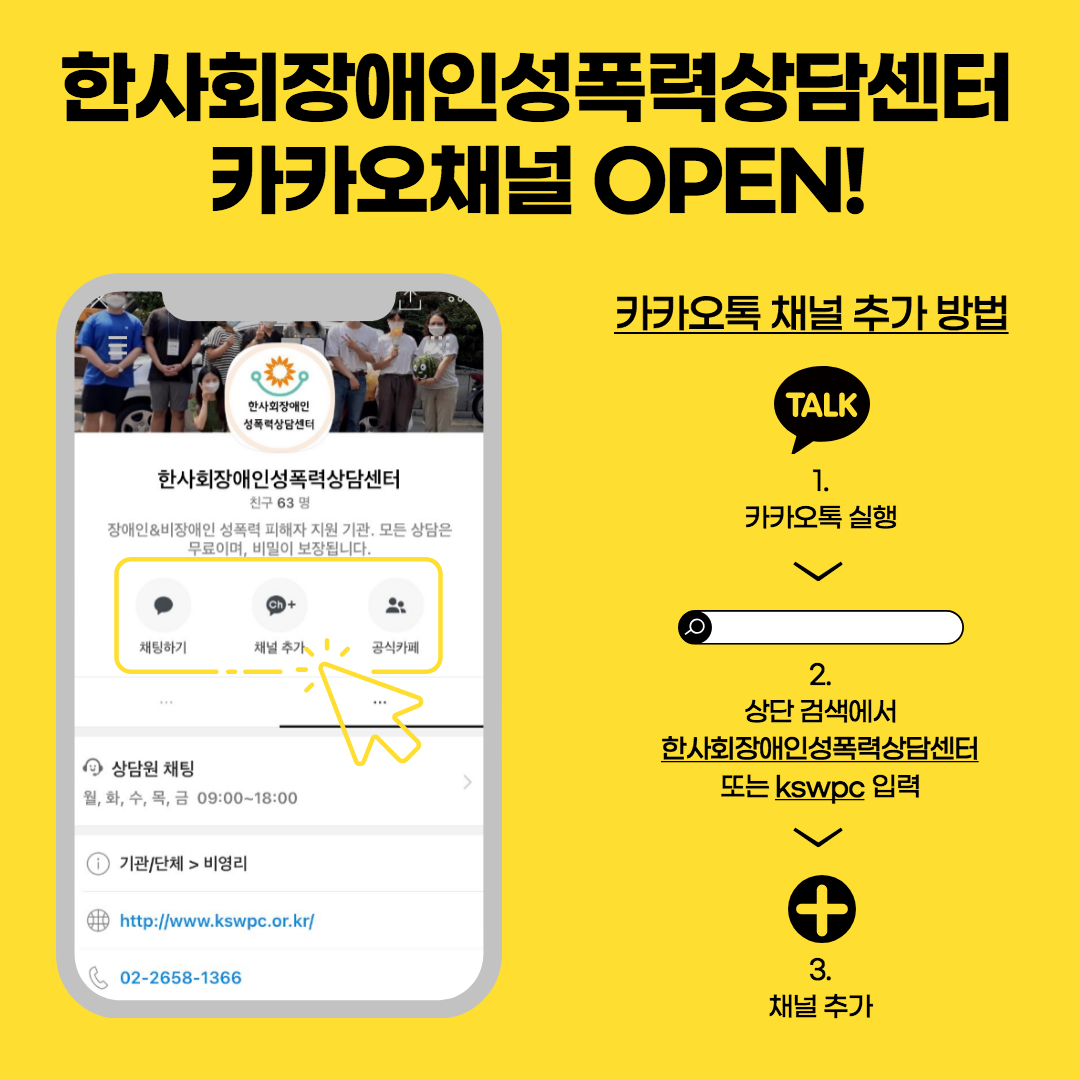 [한사회장애인성폭력상담센터] 카카오톡 채널을 오픈하였습니다.