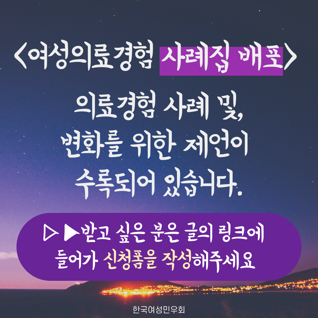 [한국여성민우회] <2020 여성의료경험 사례집> 신청