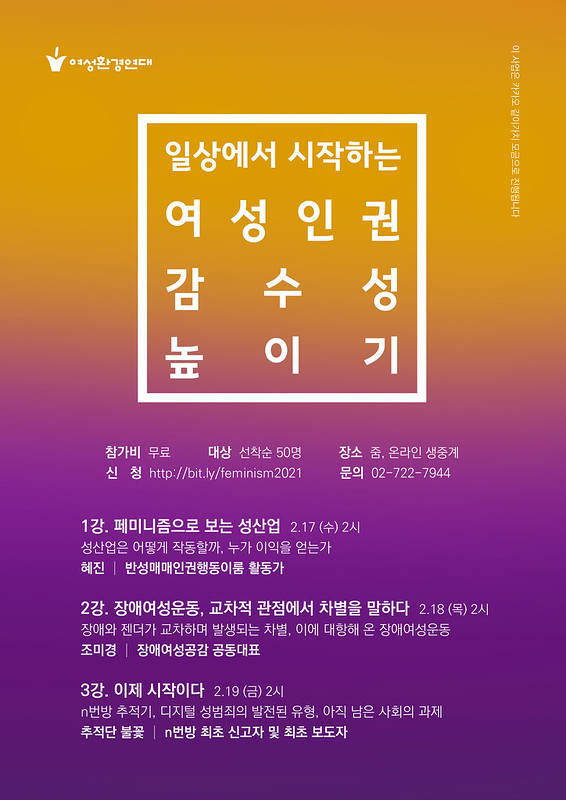 여성환경연대는 여성 인권 감수성 교육으로 시작해보려 합니다.