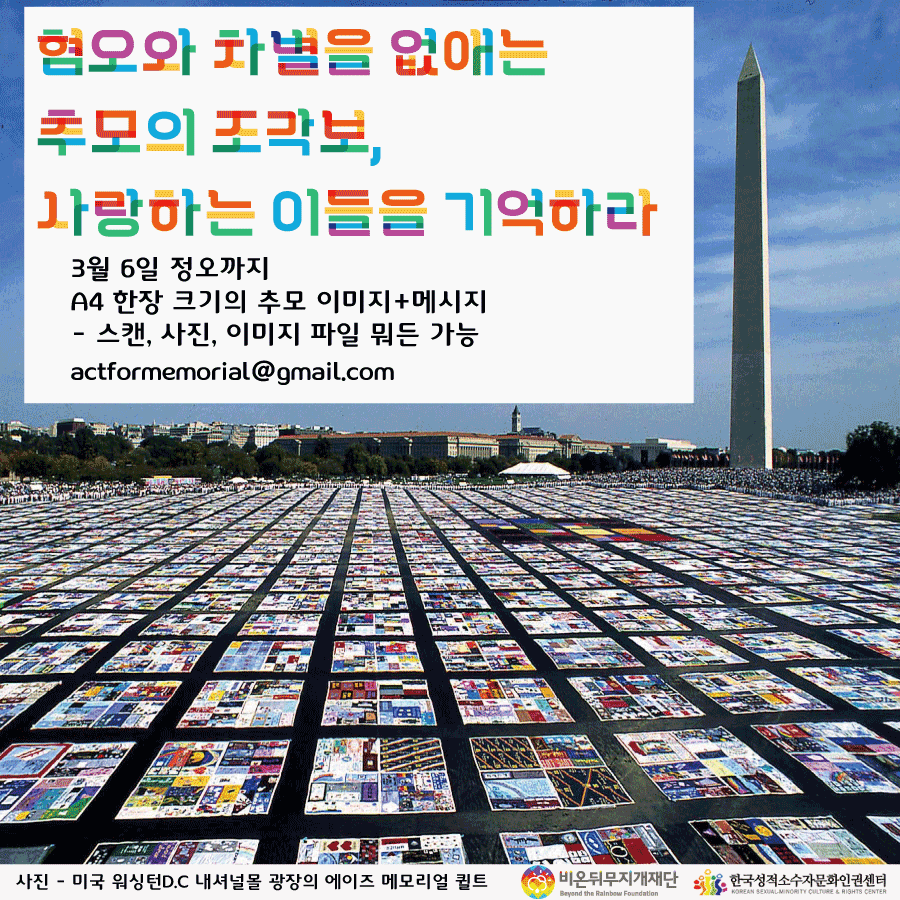 3월 6일 정오(낮 12시)까지 각자 마음에 담은 이들의 이름을 불러주세요. 전하고 싶은 말을 적어주세요. 애도의 마음을 담아주세요. 세상에 들리게 하고 싶은 외침을 남겨주세요. 그 모든 메시지와 이미지를 담아 메모리얼 퀼트를 만들어서 세상에 보입시다.
