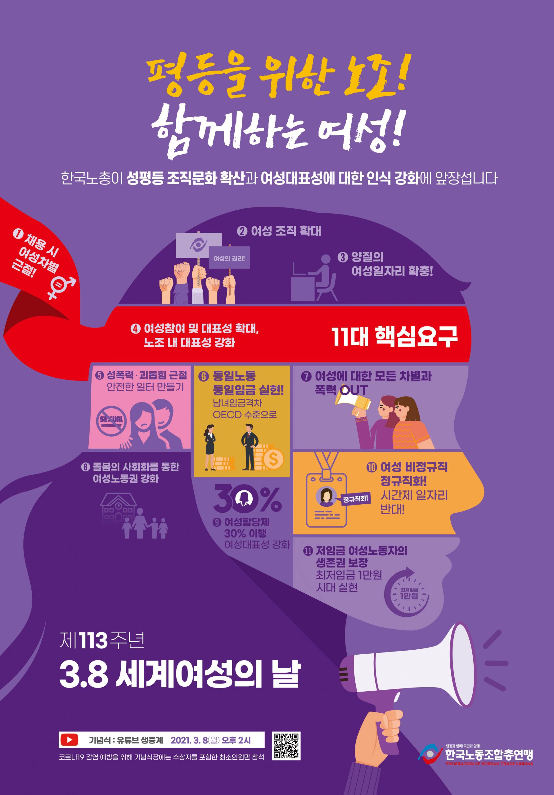 한국노총이 성평등 조직문화 확산과 여성대표성에 대한 인식 강화에 앞장섭니다.