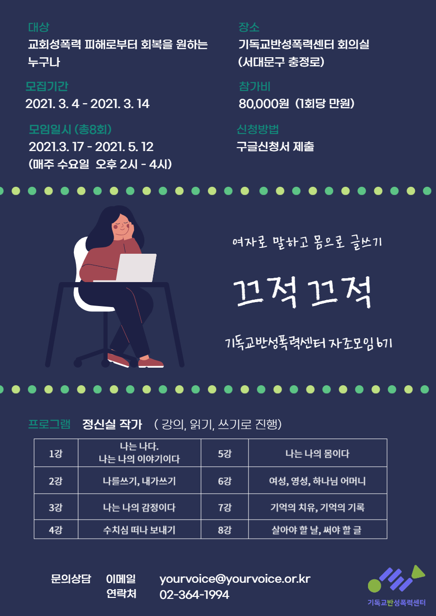 [기독교반성폭력센터] 자조모임 6기 <끄적끄적-여자로 말하고 몸으로 글쓰기>