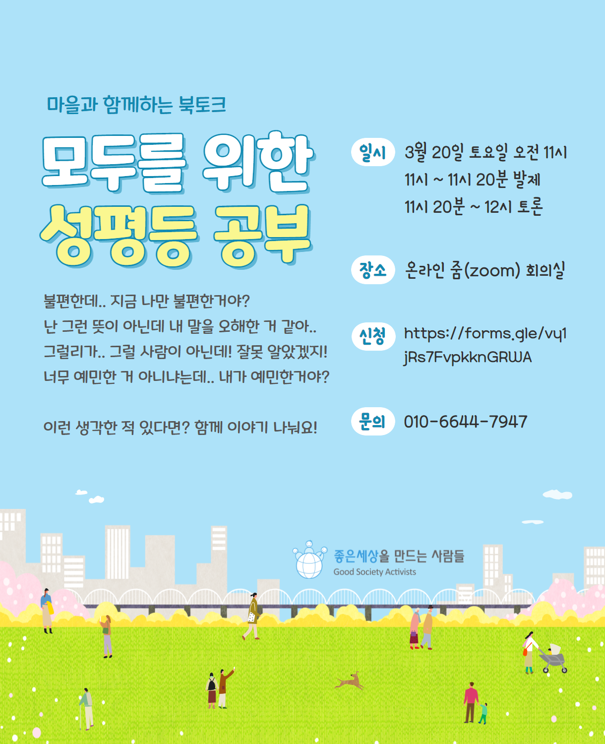 [좋은세상을만드는사람들] 마을과 함께하는 북토크 <모두를 위한 성평등 공부> (3/20)