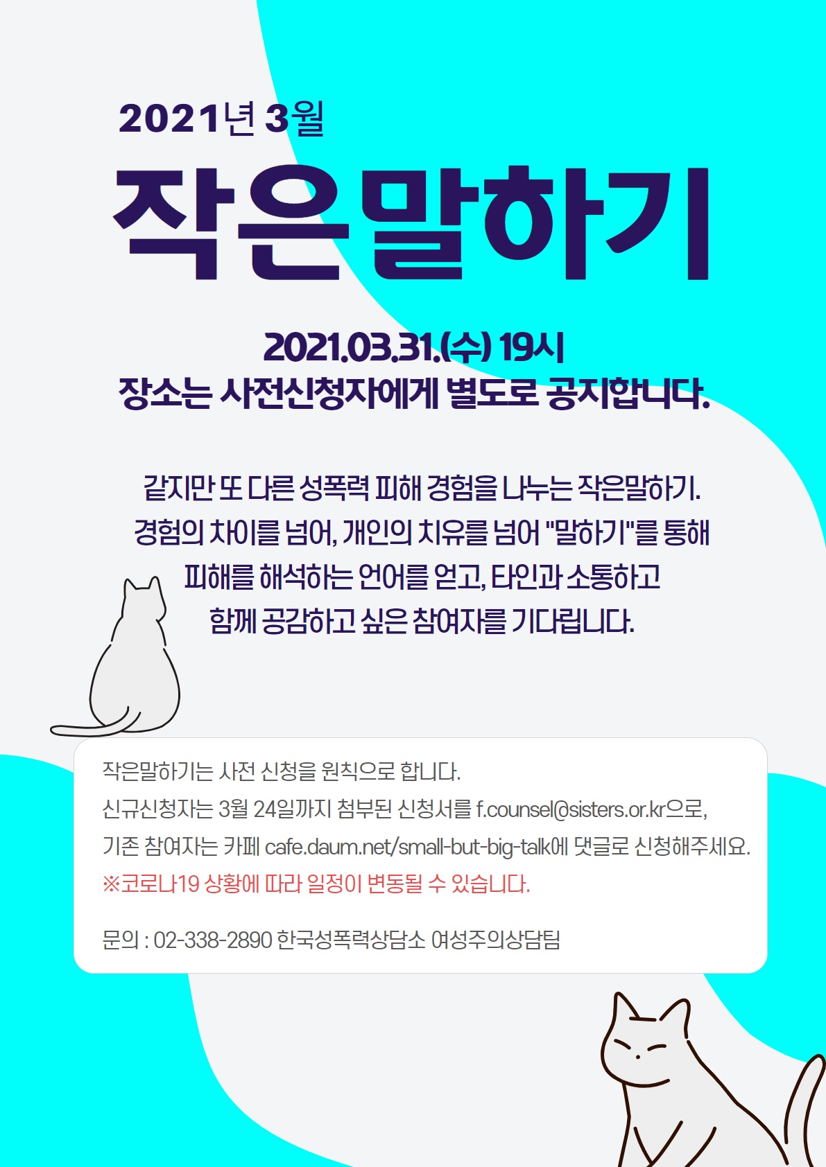 기존 참여자는 카페 cafe.daum.net/small-but-big-talk 에 댓글로 신청해주세요.