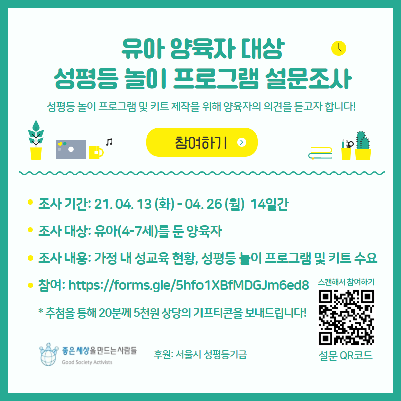 성평등 놀이 프로그램 및 키트 제작을 위해 양육자의 의견을 듣고자 합니다!