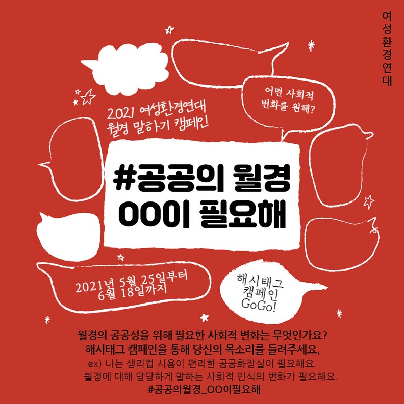 [여성환경연대] 2021년 월경말하기 캠페인 <#공공의월경 OO이 필요해> (~6/15)