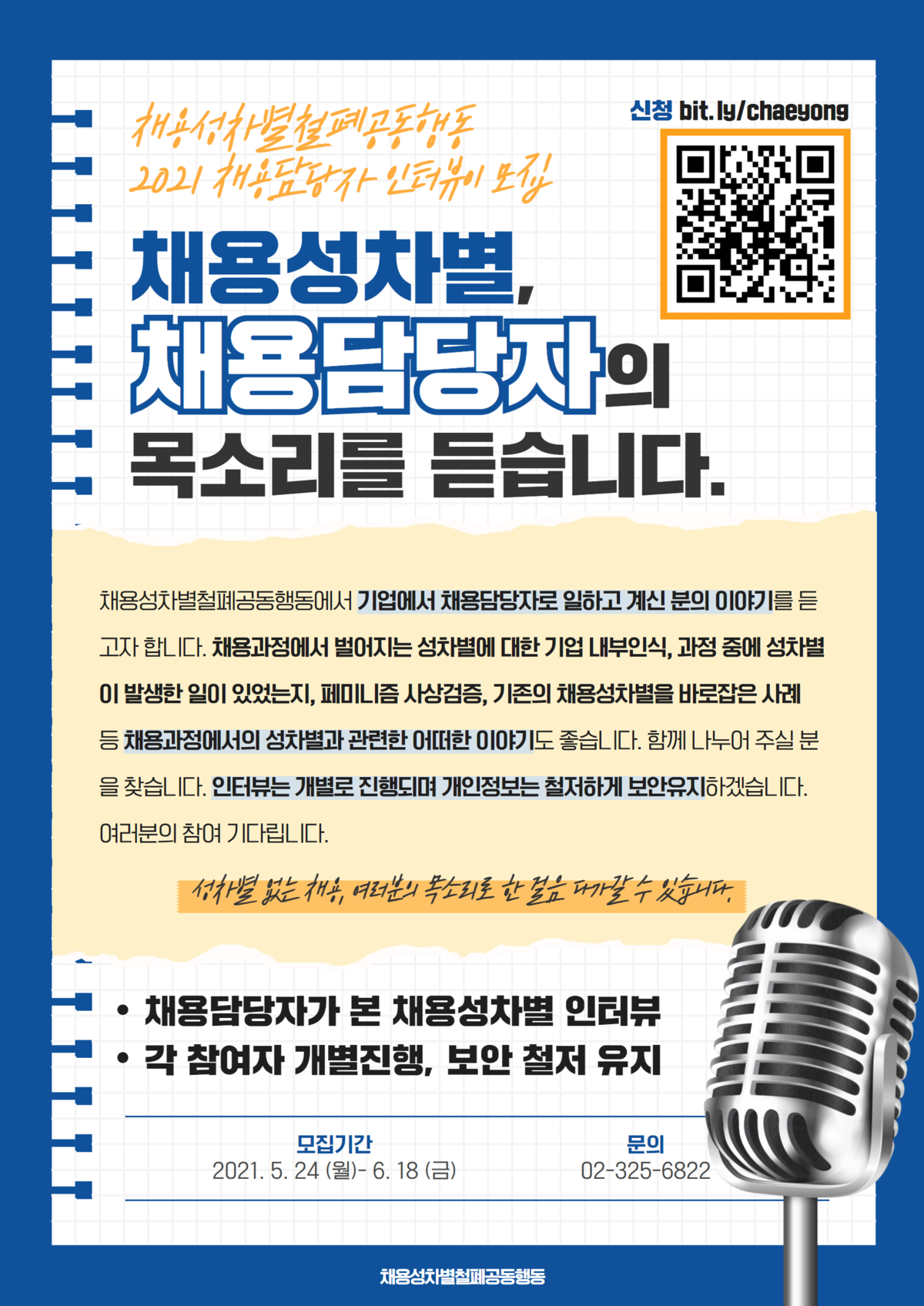 채용성차별철폐공동행동에서는 기업에서 채용담당자로 일하고 계신 분의 이야기를 듣고자 합니다.