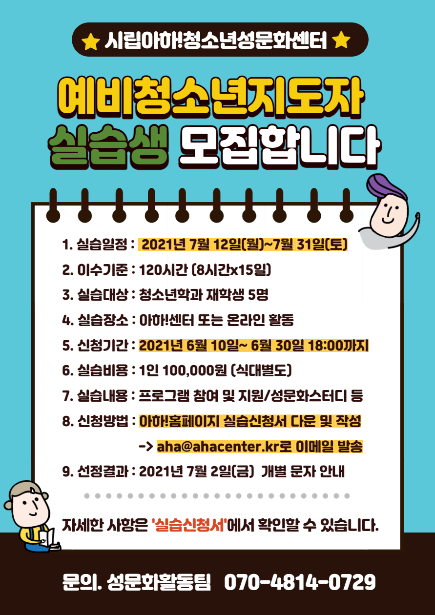 .립아하!청소년성문화센터에서는 예비 청소년지도자를 대상으로 실습생을 모집하고 있습니다