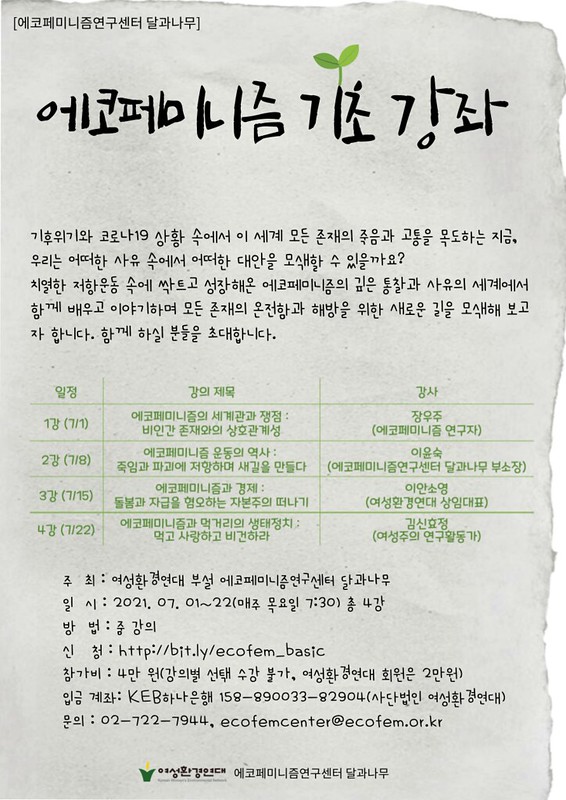 [여성환경연대] 에코페미니즘연구센터 <에코페미니즘 기초 강좌> 신청 안내