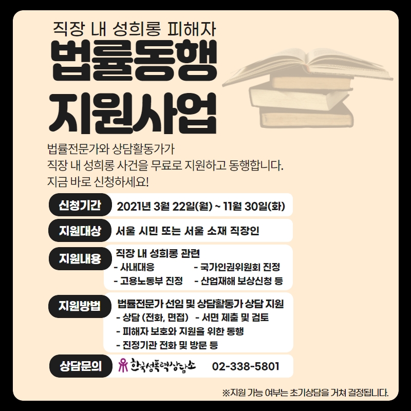 [한국성폭력상담소] <직장 내 성희롱 피해자 법률동행 지원사업> 안내 (~11/30)