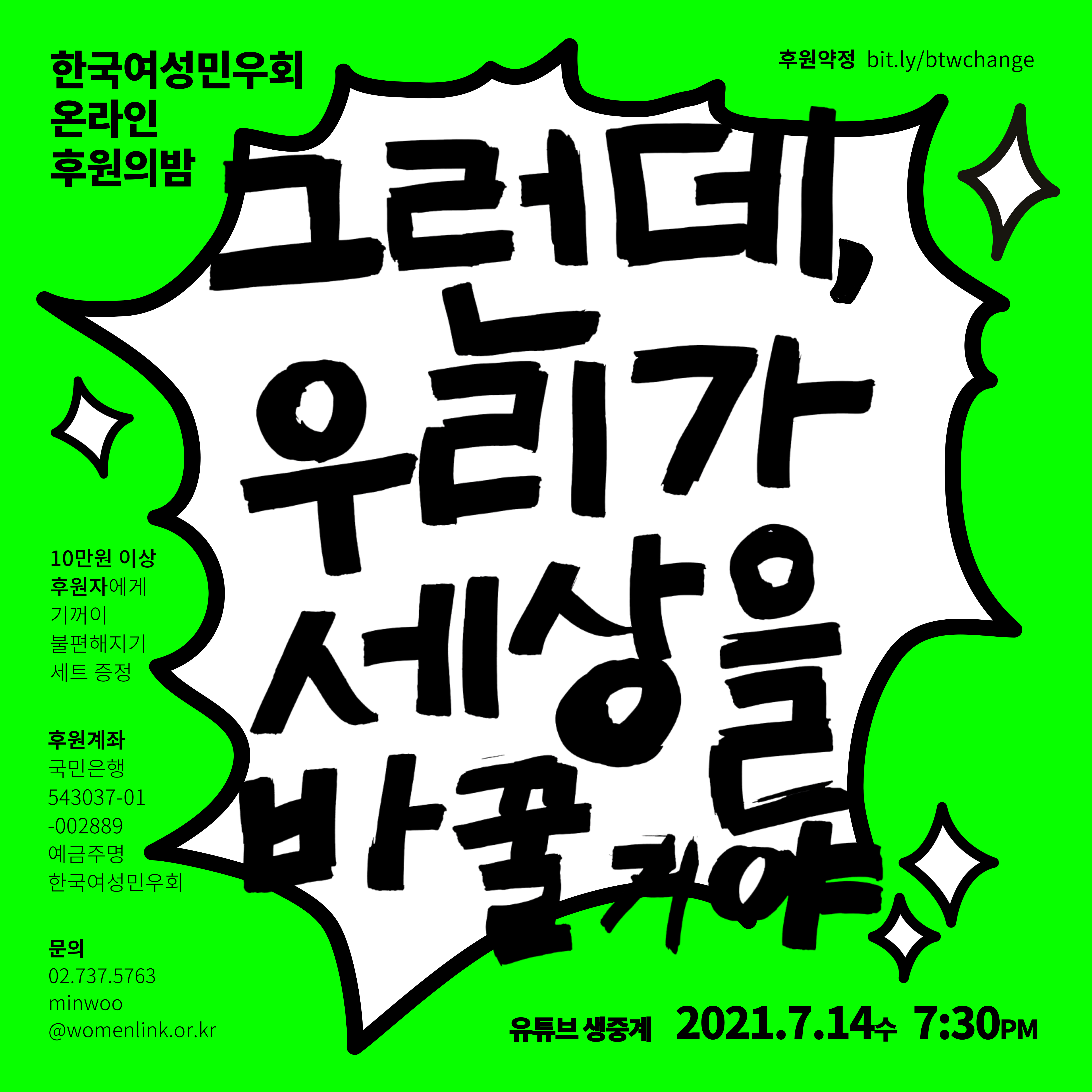 [한국여성민우회] 온라인 후원의밤 <그런데, 우리가 세상을 바꿀 거야> (7/14)