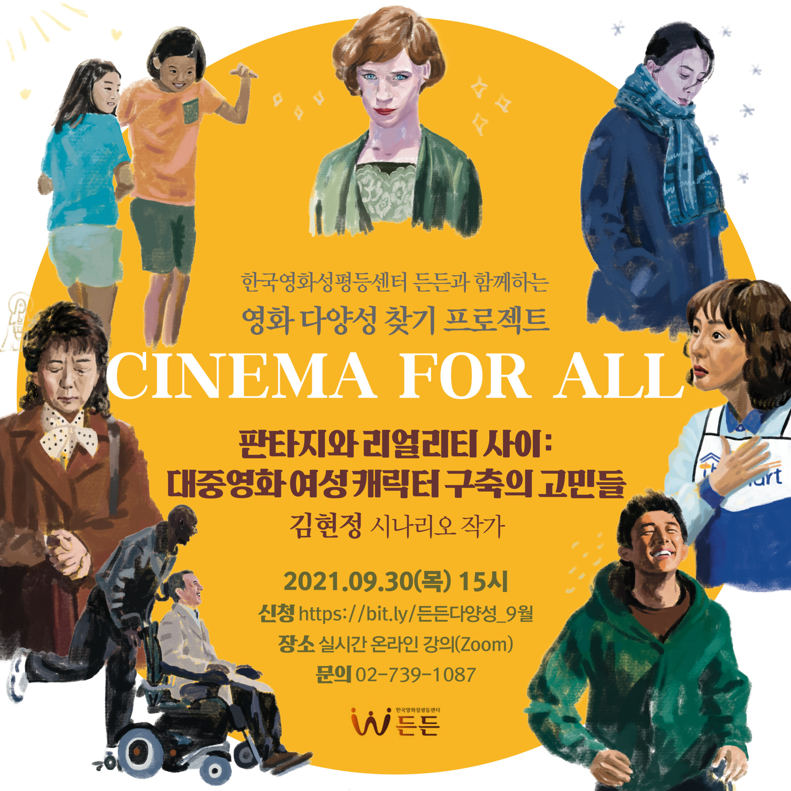 9월 영화계 다양성 교육 주제는 ‘판타지와 리얼리티 사이: 대중영화 여성 캐릭터 구축의 고민들’ (김현정 시나리오 작가)입니다.