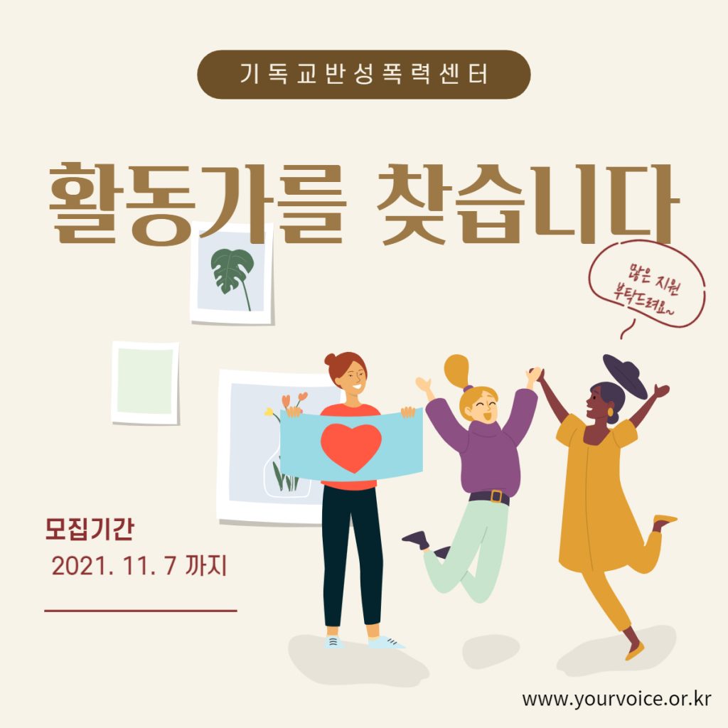 [기독교반성폭력센터] <활동가를 찾습니다> (~11/7)