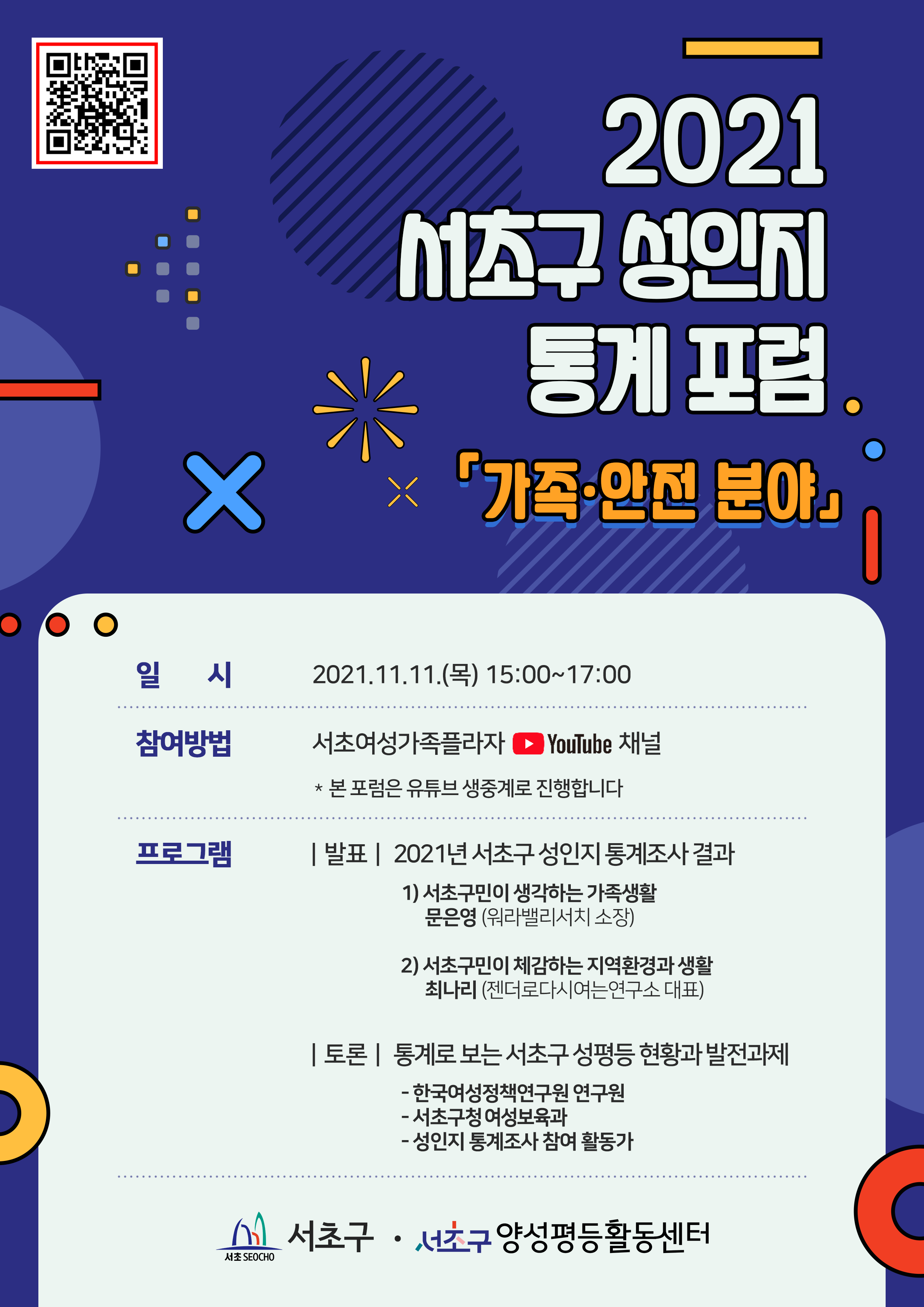 서초구양성평등활동센터에서는 2021년 서초구 성인지 통계 포럼을 개최합니다.