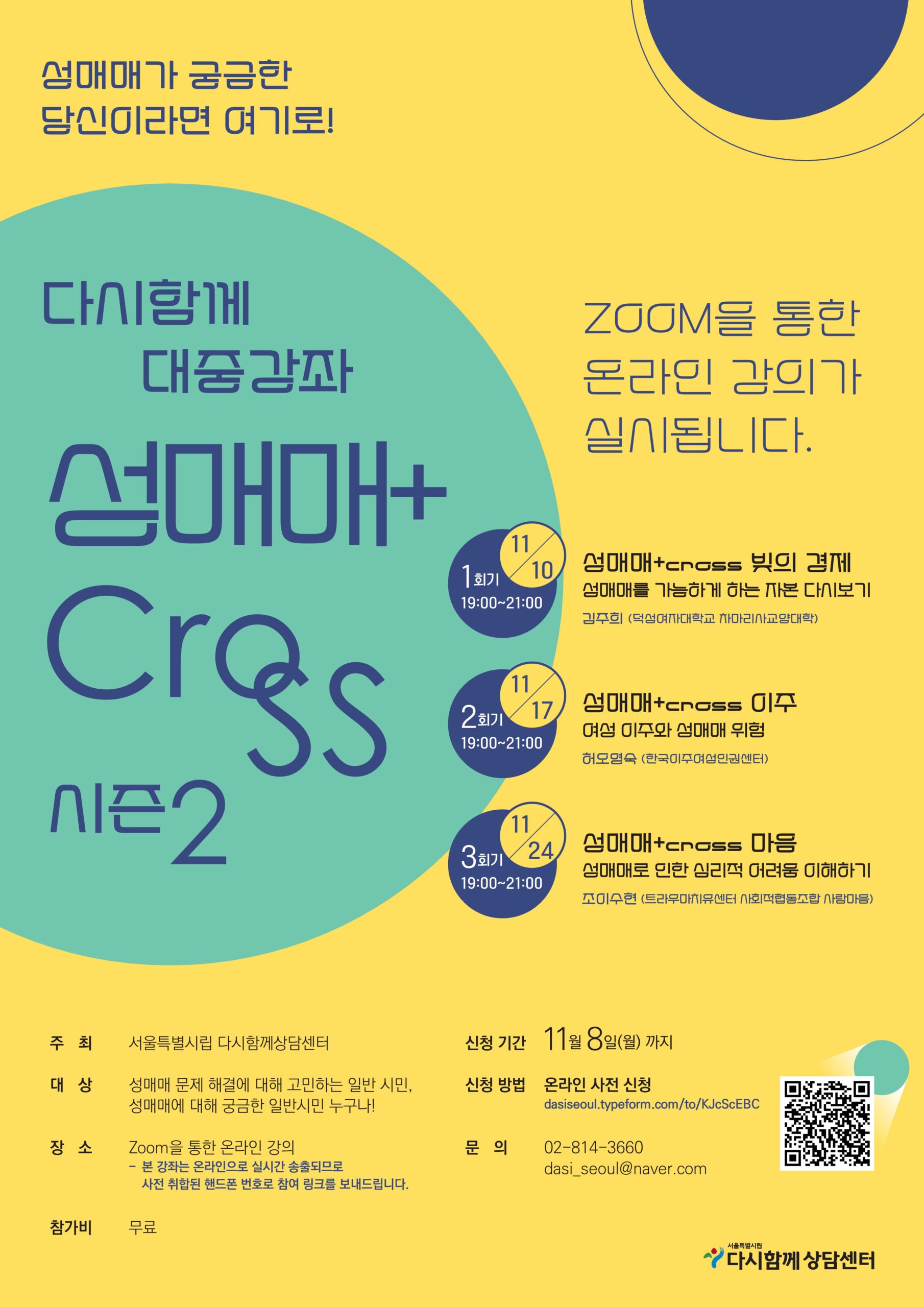 [서울특별시 다시함께상담센터] 성매매대중강좌 크로스 신청자 모집(~11/08)