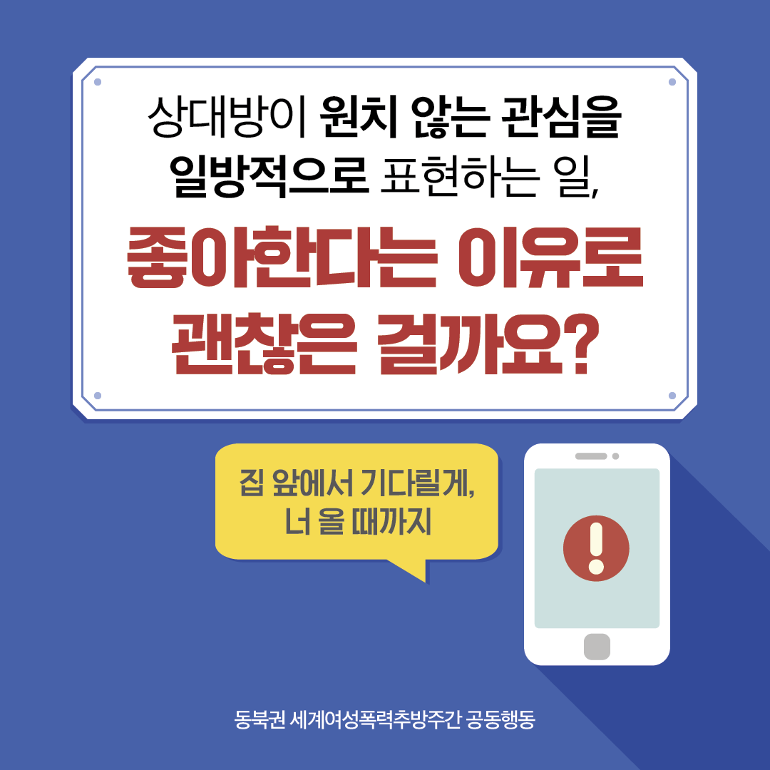 상대방이 원치 않는 관심을 일방적으로 표현하는 일. 좋아한다는 이유로 지속해도 괜찮은 걸까요?