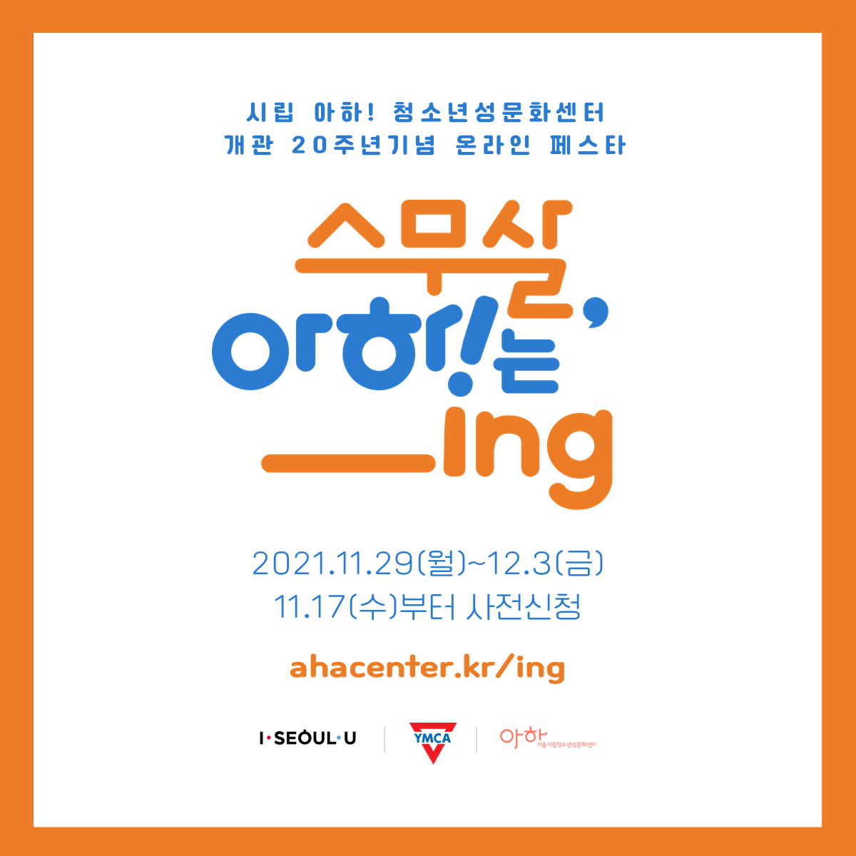 [아하! 청소년성문화센터] 20주년 기념 온라인 페스타 <스무살, 아하!는_ing> (~12/4)