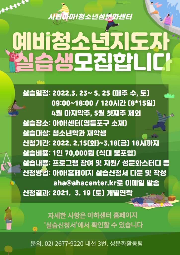 2022년 아하!센터 예비청소년지도자 실습생을 모집합니다.