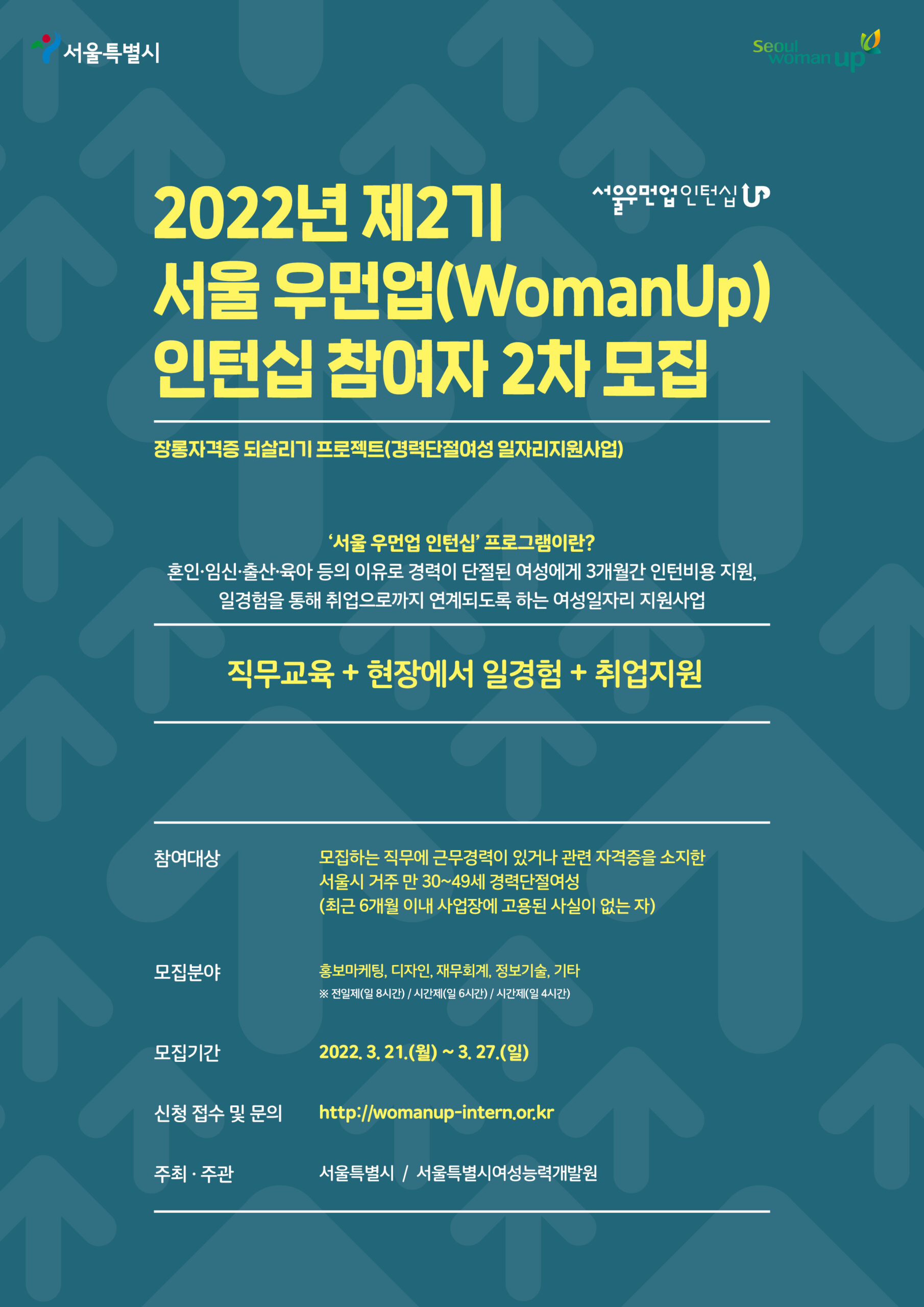 ※ 지원은 서울 우먼업 인턴십 참여신청 사이트(womanup-intern.or.kr)에서만 가능
