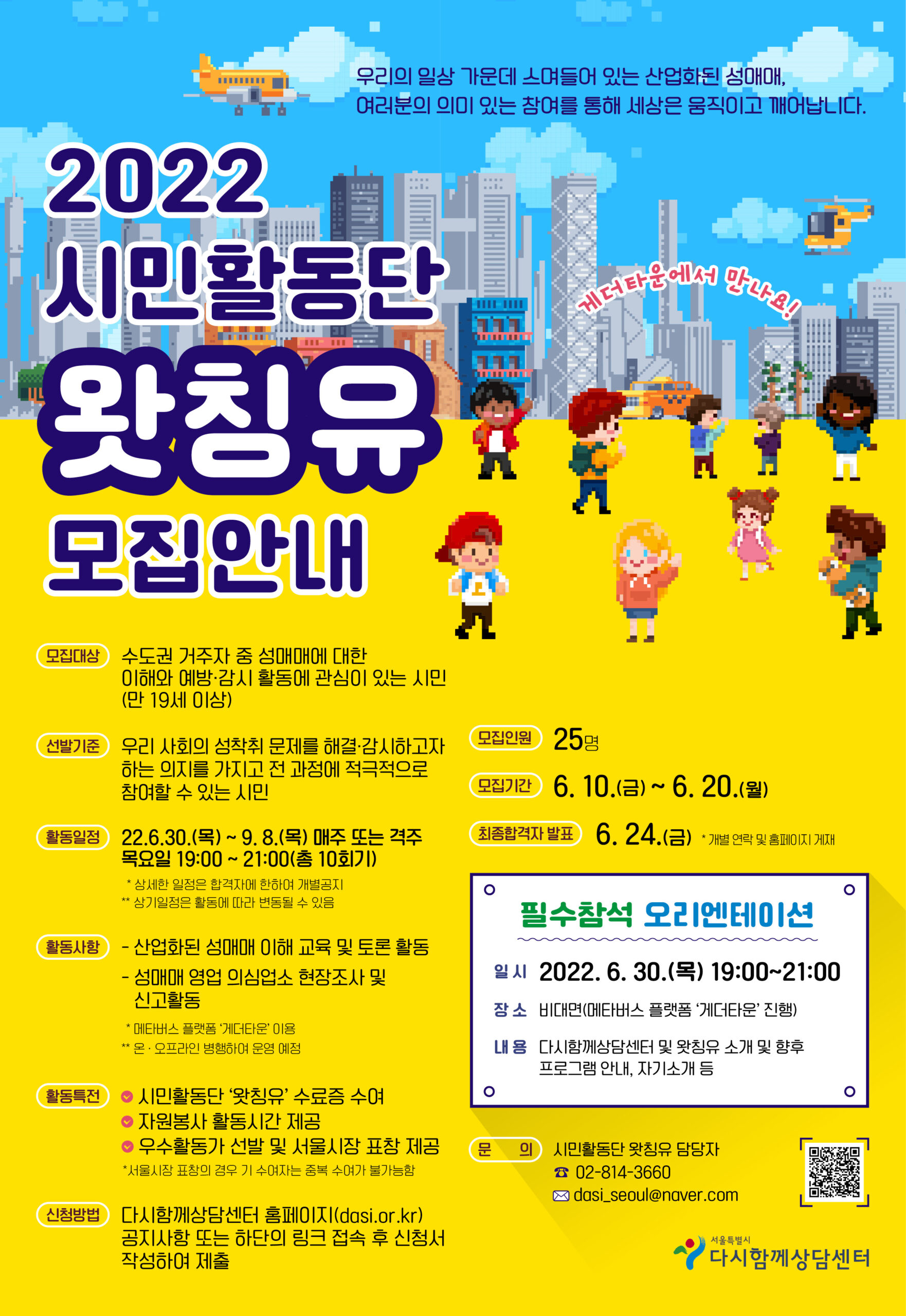 ‣ 문의 : 시민활동단 왓칭유 담당자 02-814-3660, dasi_seoul@naver.com