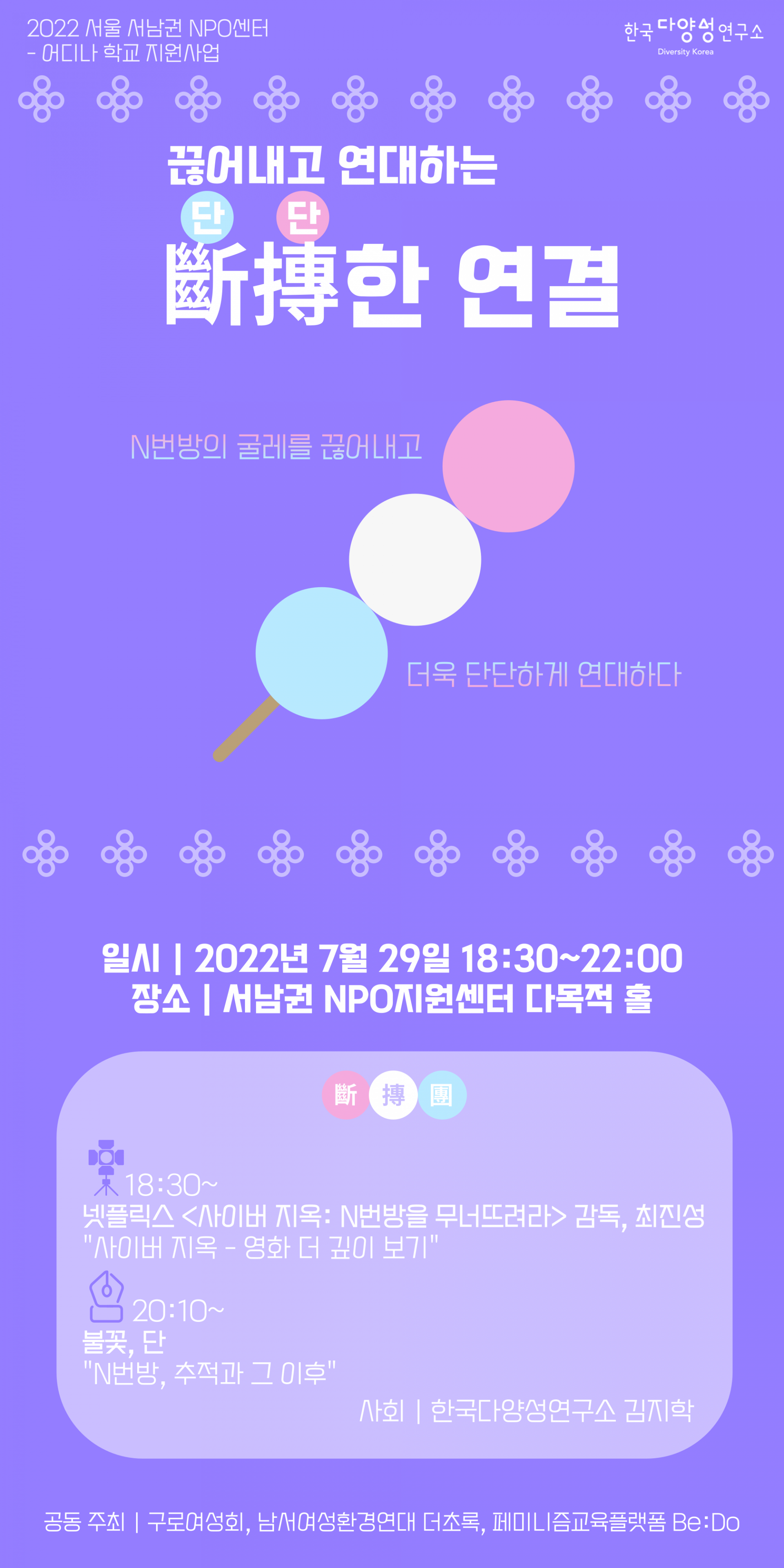 주최 및 주관: 한국다양성연구소, 구로여성회, 남서여성환경연대 더초록, 페미니즘 교육 플랫폼 Be:Do